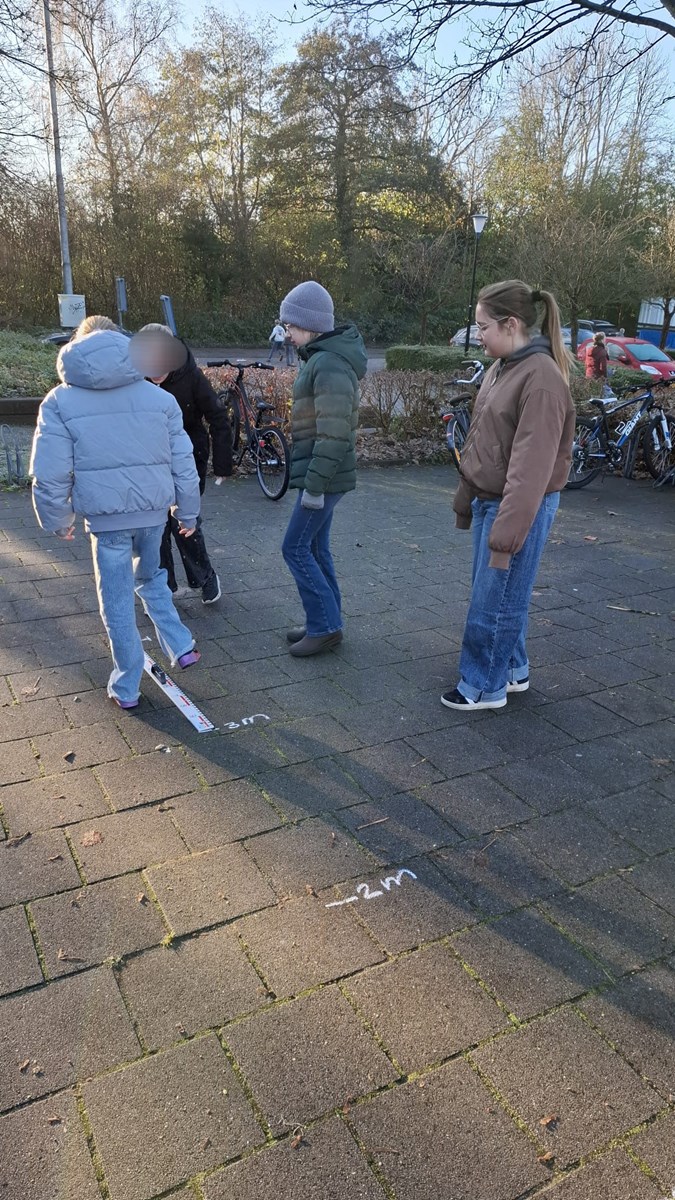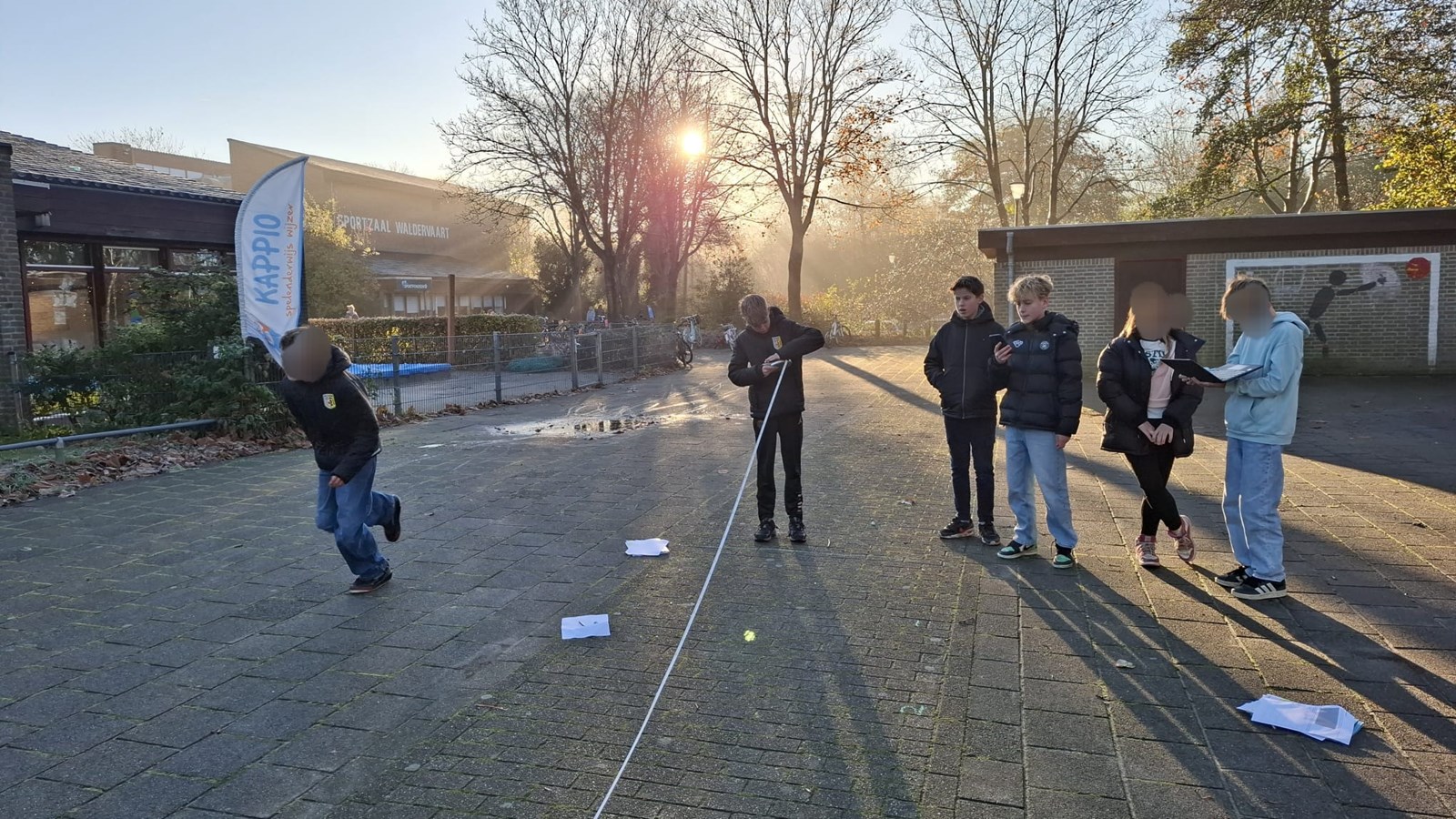 Afgelopen vrijdag heeft groep 8 gerekend met snelheid. Na eerst de snelheid van het geluid berekend te hebben en een aantal andere oefeningen was het tijd om te berekenen hoe hard ze zelf konden rennen. In groepjes maakten ze een hardloopbaan van 20 meter.
