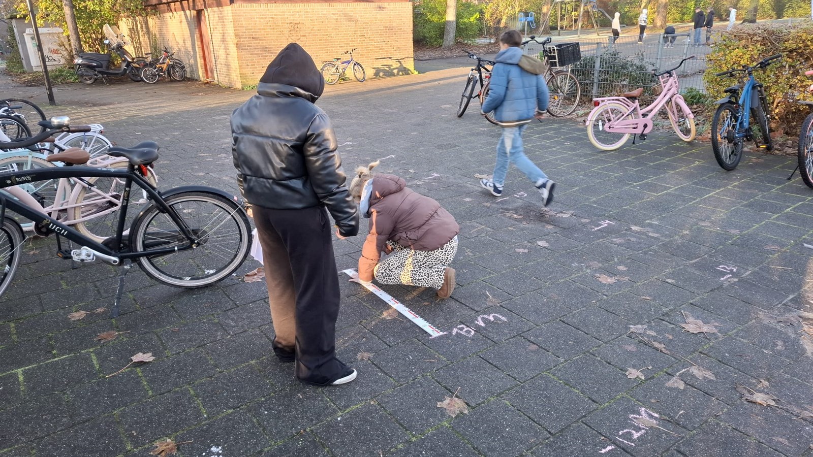 Toen was het tijd voor actie. Hoeveel meter loop je in 1 minuut? Om de beurt renden ze 1 minuut, werd de afstand genoteerd en berekenden ze hoeveel kilometer per uur ze renden. Sommige renden meer dan 12 km per uur!